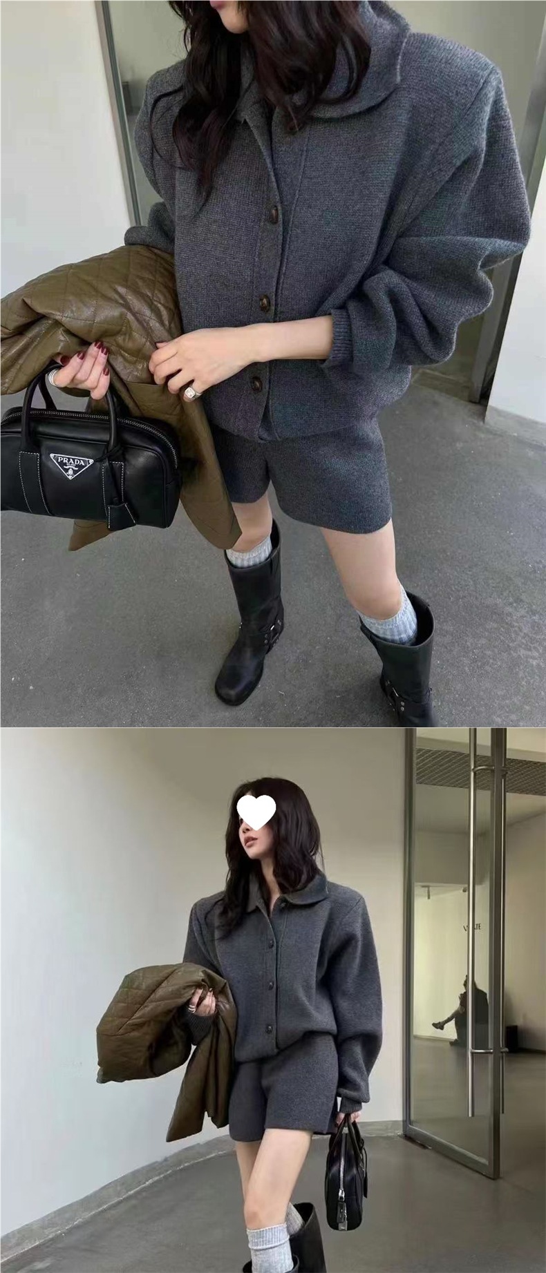 Colors: Coffee two-piece set, black two-piece set, gray two-piece set